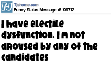 - # 114168 To me, both Presidential candidates seem kinda limp. I think the United States may be suffering from electile dysfunction ツ