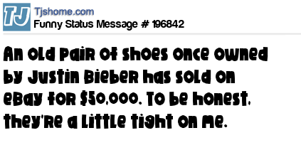 X says An old pair of shoes once owned by Justin Bieber has sold on eBay for $50,000. To be honest, they're a little tight on me.