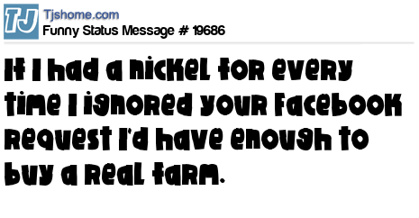 - # 22031 if I had a nickel for evertime I ignored your friends request, I could buy facebook with all my change..