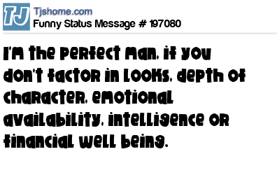 X says I'm the perfect man, if you don't factor in looks, depth of character, emotional availability, intelligence or financial well being.