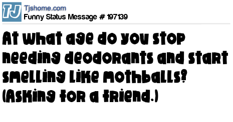 X says At what age do you stop needing deodorants and start smelling like mothballs? (Asking for a friend.)