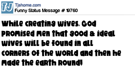X is While creating wives, God promised men that good & ideal wives will be found in all corners of the world and then he made the earth round!