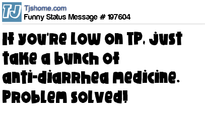 X If you're low on TP, just take a bunch of anti-diarrhea medicine. Problem solved!