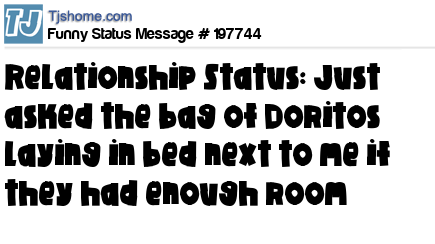 X says Relationship Status: Just asked the bag of Doritos laying in bed next to me if they had enough room