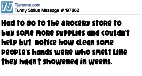 X is Had to go to the grocery store to buy some more supplies and couldn't help but notice how clean some people's hands were who smelt like they hadn't showered in weeks.
