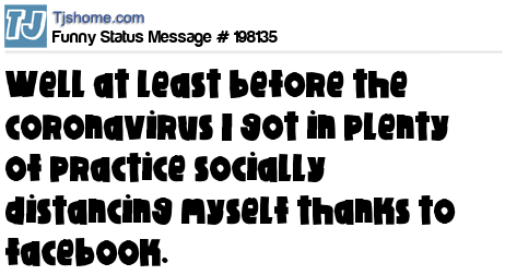 X is Well at least before the coronavirus I got in plenty of practice socially distancing myself thanks to facebook.