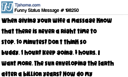 X says when giving your wife a massage know that there is never a right time to stop. 10 minutes? Don’t think so buddy. 1 hour? Keep going. 7 hours. I want more. The sun enveloping the Earth after a billion years? Now do my shoulders