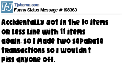 - # 52403 I just went through the "10 items or less" line with 12 items...THUG LIFE
