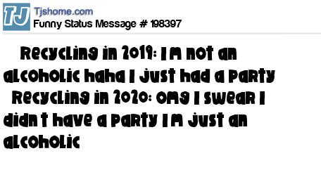X says Recycling in 2019: I’m not an alcoholic haha I just had a party Recycling in 2020: omg I swear I didn’t have a party I’m just an alcoholic