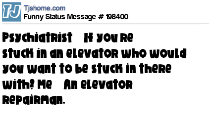 X says Psychiatrist – If you’re stuck in an elevator who would you want to be stuck in there with? Me – An elevator repairman.