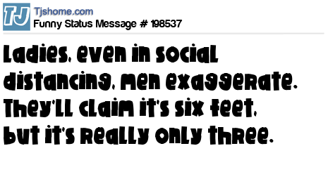 X says Ladies, even in social distancing, men exaggerate. They'll claim it's six feet, but it's really only three.