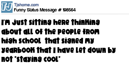 X says I'm just sitting here thinking about all of the people from high school that signed my yearbook that I have let down by not "staying cool"