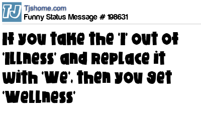 X says If you take the 'I' out of 'Illness' and replace it with 'We', then you get 'Wellness'