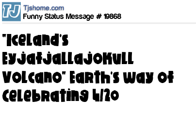 X "Iceland's Eyjafjallajokull Volcano" Earth's way of Celebrating 4/20