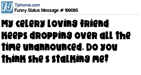 X says My celery loving friend keeps dropping over all the time unannounced. Do you think she’s stalking me?