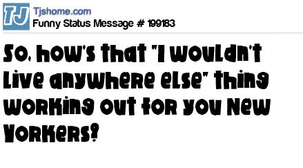 X says So, how's that "I wouldn't live anywhere else" thing working out for you New Yorkers?