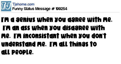 X says I'm a genius when you agree with me. I'm an ass when you disagree with me. I'm inconsistant when you don't understand me. I'm all things to all people.
