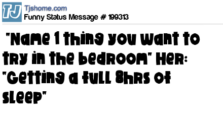 X says "Name 1 thing you want to try in the bedroom" Her: "Getting a full 8hrs of sleep"