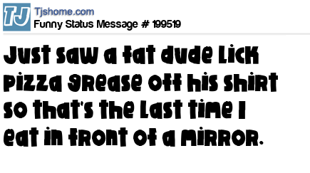 X says Just saw a fat dude lick pizza grease off his shirt so that's the last time I eat in front of a mirror.