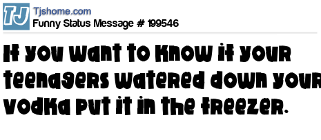 - # 60465 Hey parents with teenagers, the bottle of vodka in your liquor cabinet is water.