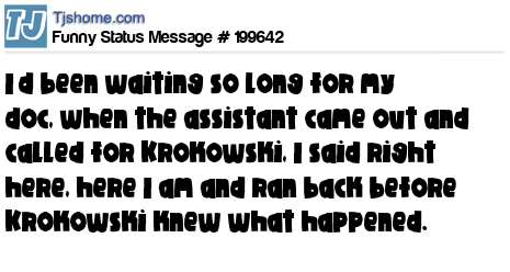 X says I’d been waiting so long for my doc, when the assistant came out and called for Krokowski, I said right here, here I am and ran back before Krokowski knew what happened.