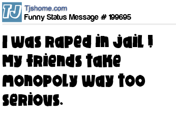 - # 166690 I almost got raped in jail. My family takes monopoly way too seriously.