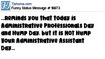 X is ...reminds you that today is Administrative Professionals Day and Hump Day, but it is NOT Hump Your Administrative Assistant Day...