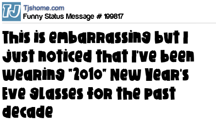 X says This is embarrassing but I just noticed that I've been wearing "2010" New Year's Eve glasses for the past decade
