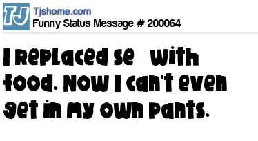 - # 11579 Now that food has replaced sex,I can't even get into my own pants.