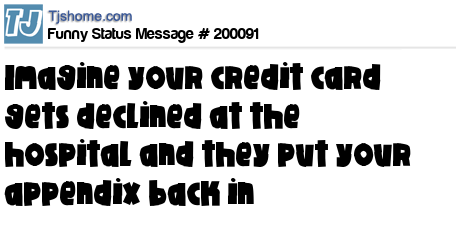 X says imagine your credit card gets declined at the hospital and they put your appendix back in