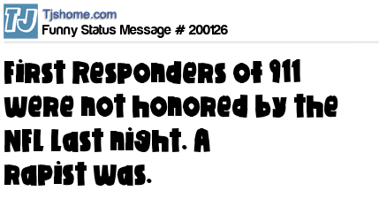 X says First Responders of 911 were not honored by the NFL last night. A rapist was.