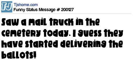 X says Saw a mail truck in the cemetery today. I guess they have started delivering the ballots!