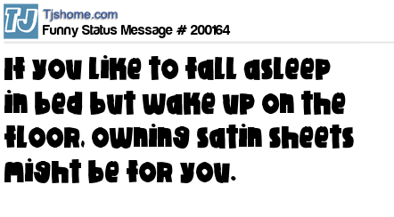 X says If you like to fall asleep in bed but wake up on the floor, owning satin sheets might be for you.