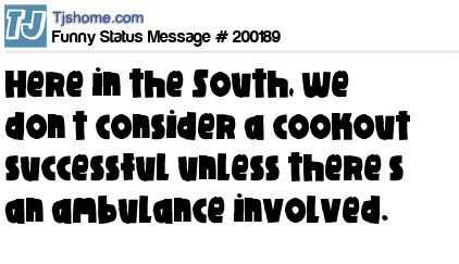 X says Here in the South, we don’t consider a cookout successful unless there’s an ambulance involved.