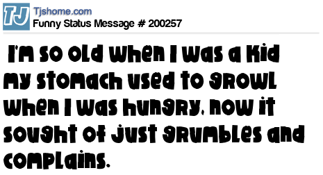 X is I'm so old when I was a kid my stomach used to growl when I was hungry, now it sought of just grumbles and complains.