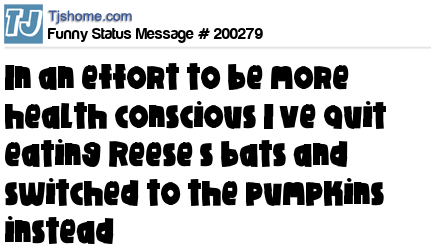 X says In an effort to be more health conscious I’ve quit eating Reese’s bats and switched to the pumpkins instead