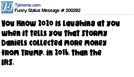 X is You know 2020 is laughing at you when it tells you that Stormy Daniels collected more money from Trump, in 2016, than the IRS.