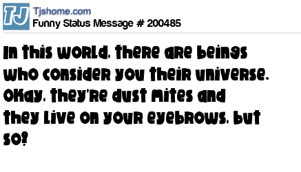 X says In this world, there are beings who consider you their universe. Okay, they're dust mites and they live on your eyebrows, but so?