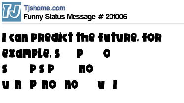 - # 41122 Can see into the future. I predict the most popular status update on Jan. 1st will be something to do with people being "hungover"