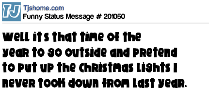 X says Well it’s that time of the year to go outside and pretend to put up the Christmas lights I never took down from last year.