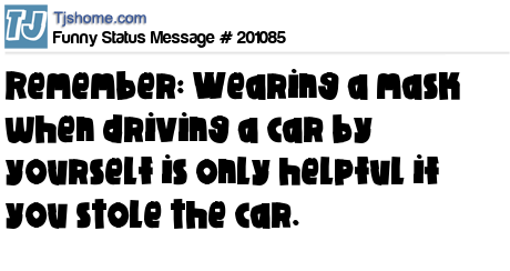X says Remember: Wearing a mask when driving a car by yourself is only helpful if you stole the car.