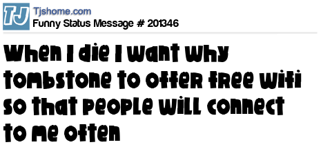 - # 75849 When I die, I want my tombstone to have free WiFi, that way people visit more often