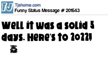 X is Well it was a solid 5 days. Here's to 2022! 🥂