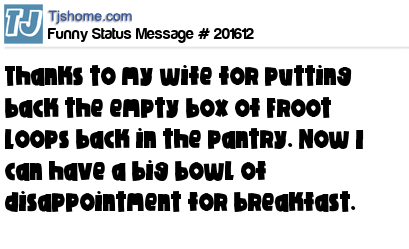 X says Thanks to my wife for putting back the empty box of Froot Loops back in the pantry. Now I can have a big bowl of disappointment for breakfast.