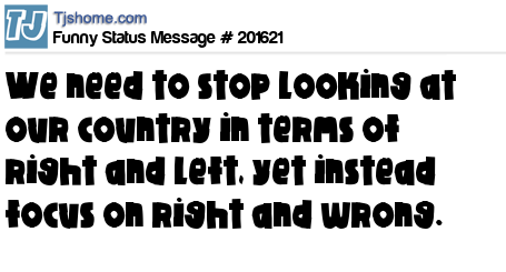 X says We need to stop looking at our country in terms of right and left, yet instead focus on right and wrong.