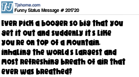 X says Ever pick a booger so big that you get it out and suddenly it’s like you’re on top of a mountain, inhaling the world’s largest and most refreshing breath of air that ever was breathed?