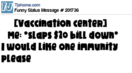 X says [Vaccination center] Me: *slaps $20 bill down* I would like one immunity please