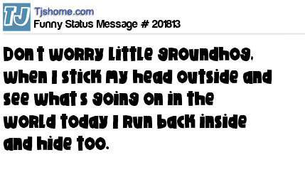 X says Don’t worry little groundhog, when I stick my head outside and see what’s going on in the world today I run back inside and hide too.