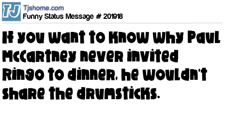 X is If you want to know why Paul McCartney never invited Ringo to dinner, he wouldn't share the drumsticks.