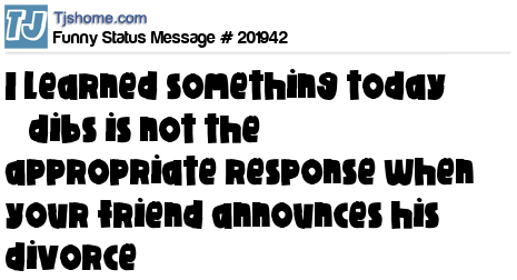 X says I learned something today – dibs is not the appropriate response when your friend announces his divorce